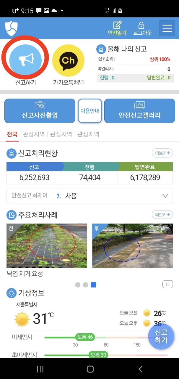 주의하실 점은 GPS 켜고 신고를 해야 접수가 된다는 것입니다.